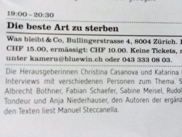 Nicht vergessen: Zürich liest am Samstag und vorher beim Verlag anmelden